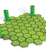 Modular playing board: 16 four‑hex tiles are assembled differently each time, delivering a fresh layout for every game.