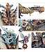 This multi-part plastic kit contains the components necessary to assemble Mortarion, Daemon Primarch of Nurgle. This is a towering model – the word ‘miniature’ barely does it justice, as he looms over the rest of the Death Guard and gives even Bloodthirsters something to look up to! He is clad in baroque power armour known as the Barbaran Plate – this is covered in rust and rot, with skulls, spikes and Nurgle symbolism on each of the chunky components. Mouldering robes, chains and a rotten cowl hang from this armour, partially covering the system of pipes that feed his breathing apparatus – it is safe to assume that this ventilator isn’t delivering fresh and clean air to Mortarion, rather vile spores and disease.