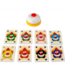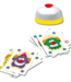 The junior version of the successful bell-ringing game. React quickly when you see two identical smiling clowns. Who collects the most cards? Each player receives a deck of cards. Each card features a cheerful or a sad clown. Players take turns flipping a card and placing it on top of their previously flipped cards. Thus, only one card is visible to each player at a time. If exactly 2 smiling clowns of a certain type are visible, all players try to press the bell as quickly as possible. But if a sad clown is on the table, you should not press the bell! The first player to correctly press the bell gets all the open cards. Players who have no cards left are eliminated. Who will be the last one standing?