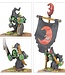 This multipart plastic kit builds 40 Night Goblins, mean-spirited mobs that gather in the Orc & Goblin Tribes. Each Night Goblin can be armed with either a thrusting spear and a crude shield, or a shortbow and quiver of arrows. This kit also provides all the command upgrades you'll need, whether you field your Night Goblins in small groups or one massive mob – you can build musicians, champions, and standard bearers with a choice of banners.