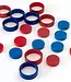 Ringo is a clever 2-player abstract strategy game that puts a fresh spin on classic four-in-a-row. Instead of a fixed board, you play with eight rings (four red, four blue) and twenty wooden discs that together form an ever-changing playing field. On your turn, you place one of your discs into any ring, then move that ring so it sits orthogonally adjacent to another. The goal is simple but tense: be the first to line up either four discs or four rings of your colour in a straight line to win.