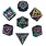 Luxe metalen regenboog‑dobbelstenen in complete set voor RPG’s en spellenavonden.