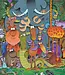 Kleurrijk Mordillo-kunstwerk: Cartoonillustratie van Guillermo Mordillo met een hele stoet dieren die klaarstaat voor een fotoshoot – humoristisch en vol verborgen details.