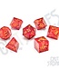 Dieprode sharp edge resin dobbelstenen met goudvlokken voor vurige, luxe worpen vol drakenkracht. Lees meer..