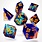 Kosmische sharp edge resin dobbelstenen met galactische kleuren en oranje cijfers voor opvallende, e..