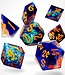 Stap in een sterrenzee van kleur met de CritStones: Galactic Ember Sharp Edge Resin - RPG Dice Set. Deze opvallende sharp edge resin dobbelstenen combineren diepe blauwe en paarse tinten met levendige roze en rode accenten, terwijl iriserende deeltjes voor een kosmische glans zorgen. De contrasterende oranje cijfers maken het geheel extra opvallend en goed leesbaar aan tafel.