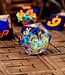 Kosmische sharp edge resin dobbelstenen met galactische kleuren en oranje cijfers voor opvallende, elegante worpen. Lees meer..
